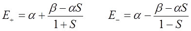 Wielkości αA, αB, β i S wyrażają się całkami: