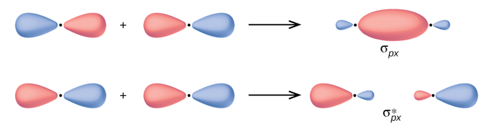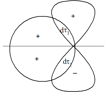 Jak widać, że względu na różnice znaków orbitalu p całka S = ∫φAφBdτ będzie równa zeru, gdyż każdemu elementowi funkcji podcałkowej dτ odpowiada taki sam element równy co do wartości bezwzględnej ale o przeciwnym znaku. Przyjmuje się, że wzdłuż wiązania pomiędzy atomami A i B w cząsteczce znajduje się oś z układu współrzędnych i w związku z tym można określić dozwolone kombinacje orbitali atomowych.