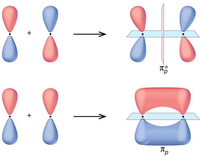 Powstające w wyniku kombinacji liniowych orbitale cząsteczkowe charakteryzują się odpowiednią symetrią względem osi łączącej jądra atomowe. Orbitale mające nieskończoną oś obrotu wokół osi wiązania oznaczane są symbolem σ. Orbital typu π posiada płaszczyznę węzłową i przy obrocie o połowę kąta pełnego zmienia znak. Natomiast orbital cząsteczkowy powstający w wyniku kombinacji dwóch orbitali dxy zlokalizowanych na atomach A i B cząsteczki ma dwie płaszczyzny węzłowe i zmienia znak przy obrocie o kąt 90°. Oznacza się go symbolem δ. Kontury wiążących i antywiążących orbitali cząsteczkowych σ i π utworzonych z atomowych orbitali p przedstawione zostały na poniższym rysunku: