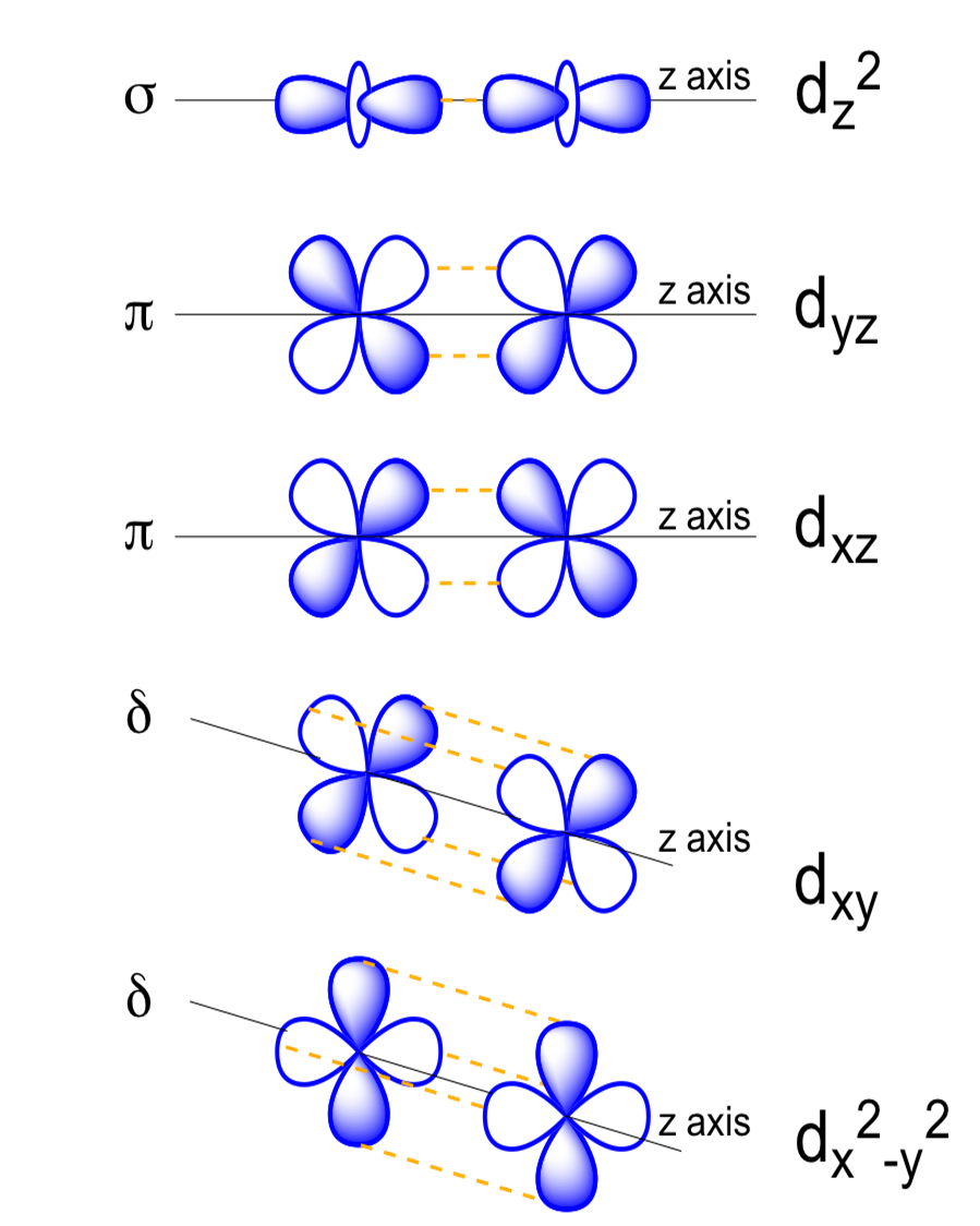 Kombinacje orbitali d w zależności od rodzaju orbitalu, dają w wyniku wszystkie typy orbitali cząsteczkowych.