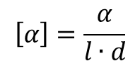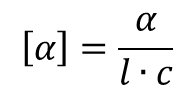 gdzie pierwszy wzór stosuje się w przypadku roztworów, a drugi czystych substancji. α to obserwowana skręcalność, l to długość kuwety w decymetrach, c stężenie w gramach na mililitr, a d to gęstość w tych samych jednostkach.