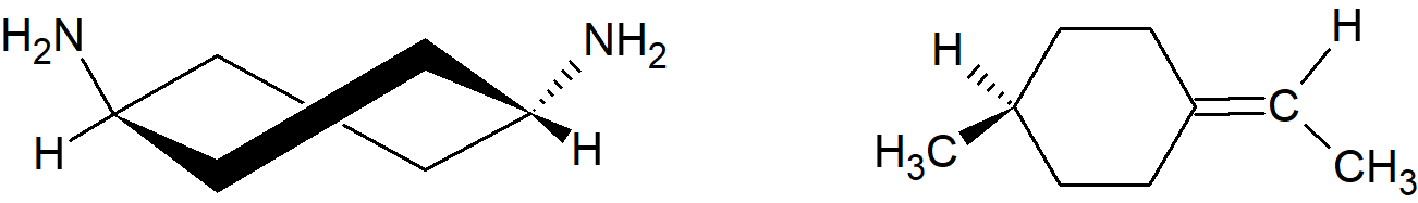 W takich związkach oba pierścienie wyznaczają wzajemnie prostopadłe płaszczyzny. Jeśli którykolwiek z pierścieni jest symetrycznie podstawiony, cząsteczka ma płaszczyznę symetrii i jest niechiralna. Natomiast cząsteczka: