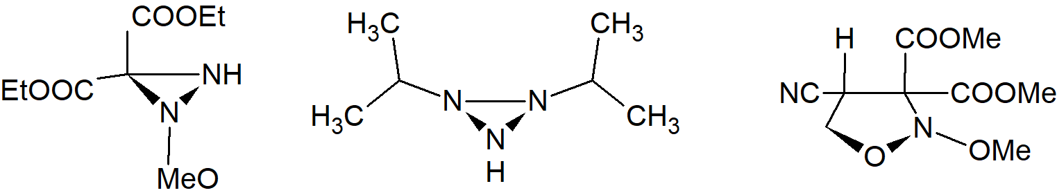 Stabilność konformacyjną wykazano również dla oksazyrydyn, diazyrydyn triazyrydyn i 1,2-oksazolidyn, chociaż w ostatnim przypadku pierścień jest pięcioczłonowy. Należy jednak zauważyć, że tutaj atom azotu jest połączony z dwoma atomami tlenu.