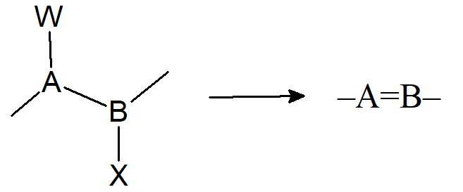 W momencie gdy z sąsiednich atomów węgla uwalniane są dwa podstawniki powstaje wiązanie podwójne lub potrójne w reakcji zwanej b-eliminacją. Jeden z atomów określany jest symbolem α, a drugi β.