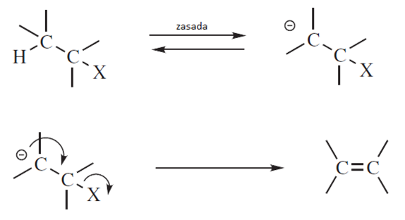 W mechanizmie E1 podstawnik X opuszcza cząsteczkę substratu jako pierwszy a następnie odszczepiany jest H. W mechanizmie E2 obydwie grupy zostają odszczepione w tym samym czasie. Istnieje jeszcze jedna możliwość, zgodnie z którą jako pierwszy odszczepiany jest H a dopiero potem X. Proces ten jest dwuetapowy i określany symbolem E1cB, czyli mechanizmem karboanionowym.