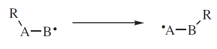 Przegrupowania rodnikowe 1,2 są znacznie mniej powszechne niż nukleofilowe, ale jeśli występują to ogólny schemat jest taki sam. Najpierw musi nastąpić wytworzenie wolnego rodnika, a następnie faktyczna migracja, w której migrująca grupa porusza się z jednym elektronem: