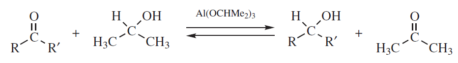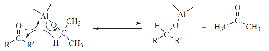 – alkohol izopropylowy i izopropanolan glinu: redukcja Meerweina–Ponndorfa–Verleya. Proces jest odwracalny, a reakcja odwrotna nazywana jest utlenianiem Oppenauera.