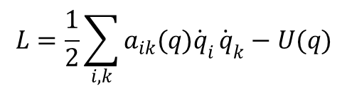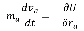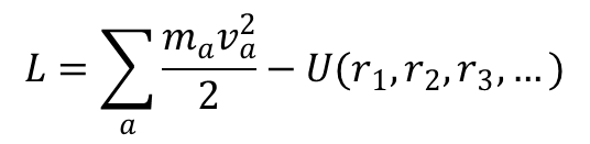 Wektor znajdujący się po prawej stronie tego równania jest siłą oddziałującą na a-tą cząstkę. Siła zależy, podobnie jak energia potencjalna, tylko od współrzędnych wszystkich cząstek, a nie zależy od ich prędkości. Jednocześnie z powyższego wzoru wynika, że wektory przyspieszeń cząstek są funkcjami jedynie współrzędnych. Energia potencjalna jest określona z dokładnością do stałej addytywnej, której dodanie nie zmienia równań ruchu. Przyjmujemy, że energia potencjalna dąży do zera gdy odległość pomiędzy cząstkami się zwiększa. Jeżeli przy opisie ruchu posługujemy się nie współrzędnymi kartezjańskimi, a współrzędnymi uogólnionymi funkcja Lagrange’a przyjmuje postać: