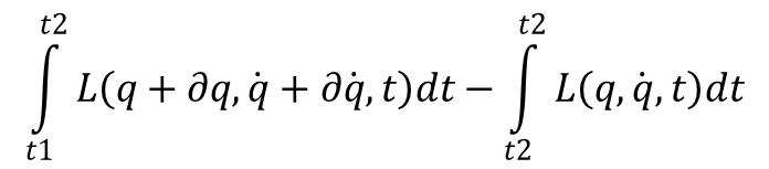 przyjmuje najmniejszą możliwą wartość. Funkcję L nazywa się funkcją Lagrange’a danego układu, a całka S jest działaniem układu. W celu znalezienia równań różniczkowych, których rozwiązania będą minimalizować całkę S załóżmy, że układ ma tylko jeden stopień swobody. W takim wypadku szukamy tylko jednej funkcji q = q(t). Jeżeli dla tej funkcji całka S ma minimum to jasnym jest, że S będzie wzrastało jeżeli zastąpimy q(t) dowolną funkcją postaci q(t) + δq(t) gdzie δq(t) jest funkcją małą w całym przedziale od t1do t2. Funkcję δq(t) nazywa się wariają funkcji q(t). Ponieważ dla czasów t1 i t2. wszystkie funkcje powinny przyjmować wartości q1 i q2 to wariacja powinna spełniać warunek: