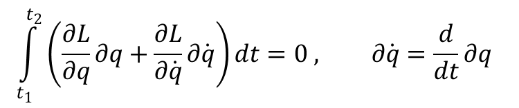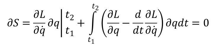 W tym wyrażeniu na mocy warunku δq(t1) = δq(t2) = 0 znika pierwszy wyraz, a druga całka powinna znikać przy dowolnych wartościach wariacji δq. Jest to możliwe tylko gdy wyrażenie podcałkowe jest równe zero, czyli:
