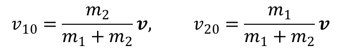 Rozpatrzmy sprężyste zderzenie cząstek, czyli takie podczas którego nie zmieniają się ich wewnętrzne stay. Założenie takie pozwala rozpatrywać proces zderzenie nie biorąc pod uwagę wewnętrznej energii cząstek. Zdefiniujmy laboratoryjny układ odniesienia jako taki, w którym jedna z cząstek spoczywa a druga porusza się z prędkością v. Jednak najprościej opisać proces zderzenia w układzie odniesienia, w którym spoczywa środek masy obu cząstek, czyli w układzie środka masy. W takim układzie prędkości cząstek są związane z prędkością v w układzie laboratoryjnym zależnościami (prędkości w układzie środka masy wyróżnione są wskaźnikiem 0):