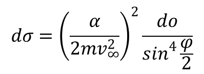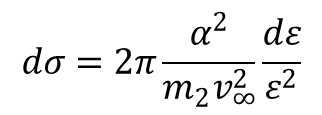 Wzór ten nosi nazwę wzoru Rutherforda i jest słuszny zarówno w przypadku kulombowskiego pola odpychania jak i przyciągania. Przekrój czynny można przedstawić w funkcji strat energii ε cząstki m1 zmieniającej się od 0 do εmax = 2m2v∞2/m2. Ma on postać: