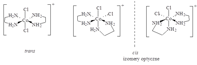 c) klastery – trzy lub więcej atomów (jonów) centralnych, miedzy którymi występują wiązania