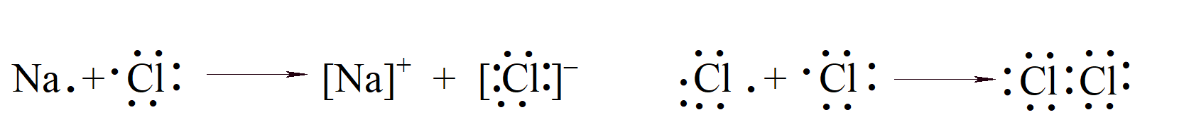 W poprzedniej teorii wartościowości nie rozróżniono związków jonowych, takich jak chlorek sodu, i substancji niejonowych, takich jak dwutlenek węgla. Teorie zaproponowane przez A. Kossela i G. N. Lewisa uznają, że są one zasadniczo różne. Jeśli zewnętrzne elektrony w atomie są oznaczone kropkami, tworzenie chlorku sodu i cząsteczki chloru może być przedstawione jako: