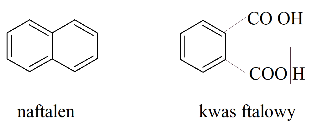 W 1866 r. E. Erlenmeyer zasugerował, że naftalen, odkryty przez A. Gardena i J. Kidda w smole węglowej, składa się z dwóch skondensowanych pierścieni benzenowych mających dwa wspólne atomy węgla. W wyniku utlenienia naftalenu kwas ftalowy został uzyskany przez A. Laurenta w 1836 r.; budowę naftalenu ustalił C. Gräbe, ponieważ bardzo łatwo tworzy bezwodnik w wyniku utraty wody, a zatem prawdopodobnie zawiera dwie grupy karboksylowe w dwóch sąsiadujących pozycjach: