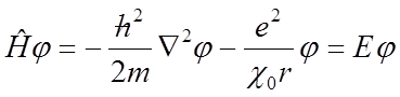 Najprostszym układem jest atom wodoru. Ponieważ ładunek jądra jest równy e, a ładunek elektronu –-e. Elektron porusza się w przestrzeni trójwymiarowej i jego energia kinetyczna wynosi ½m(vx2 + vy2 + vz2). Energia potencjalna jest równa –e2/χ0r, gdzie r jest odległością elektronu od jądra. W takim wypadku równanie falowe ma postać: