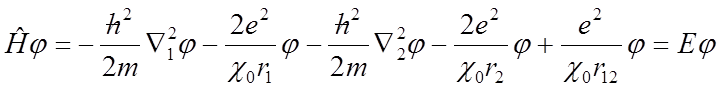 W przypadku atomu helu mamy dwa elektrony i równanie falowe uwzględnia wszystkie sześć zmiennych przestrzennych: