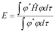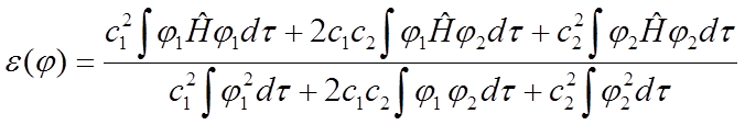 W przypadku funkcji unormowanej mianownik tego wyrażenia będzie równy jedności. Jeżeli znamy dokładną postać funkcji falowej φ to korzystając z tego równania obliczymy dokładną wartość energii. Jednak nie dysponujemy taką funkcją to zgodnie z tym co wykazał Rayleigh stosując przybliżoną funkcję falową uzyskujemy przybliżoną wartość energii układu, która będzie większa niż wartość dokładna. Metoda wariacyjna polega na dobieraniu odpowiednich parametrów funkcji falowej i na tej podstawie poszukiwaniu minimum energii.