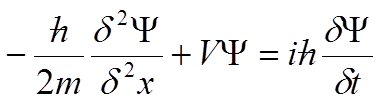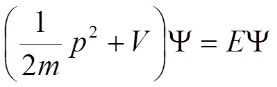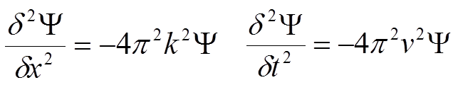Podstawiając do równania zależności łączące pęd, długość fali i liczbę falową oraz częstość drgań z energią, czyli k = 1/λ = p/h, jak również ν =E/h, i wiedząc, że energia E = p2/2m + V, otrzymujemy: