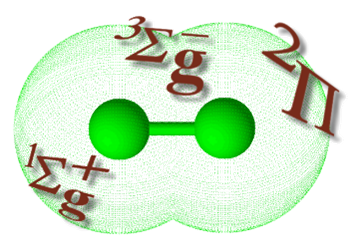 W teorii cząstek istotną rolę odgrywa fakt, że masy jąder są znacznie większe od masy elektronów. W związku z tym prędkość ruchu jąder jest mała w porównaniu z prędkością ruchu elektronów, co pozwala rozpatrywać ruch elektronów przy nieruchomych jądrach znajdujących się w stałych wzajemnych odległościach. Poziomy energetyczne takiego układu określane są nazwą termów elektronowych cząsteczki. W cząsteczce termy te są funkcjami odległości między jądrami. Energia termów zawiera w związku z tym człon energii elektrostatycznej oddziaływania jąder ze sobą. W cząsteczkach dwuatomowych termy są funkcjami tylko jednego parametru jakim jest odległość między jądrami. W atomach termy są klasyfikowane w zależności od wartości całkowitego orbitalnego momentu pędu. W cząsteczkach całkowity orbitalny moment pędu nie jest stałą ruchu gdyż pole elektryczne kilku jąder nie ma symetrii sferycznej. Natomiast w cząsteczkach dwuatomowych występuje symetria osiowa, w której oś symetrii przechodzi przez obydwa jądra. Z tego powodu zachowany jest rzut orbitalnego momentu pędu na tę oś i wartość tego rzutu stanowi podstawę klasyfikacji termów cząsteczkowych. Wartość bezwzględną rzutu orbitalnego momentu pędu oznacza się literą Λ, i przyjmuje ona wartości 0, 1, 2, ... . Termy o różnych wartościach Λ oznacza się dużymi literami greckimi, odpowiadającymi łacińskim symbolom termów atomowych. I tak gdy Λ = 0, 1, 2 mamy termy Σ, Π, Δ. Każdy stan elektronowy cząsteczki charakteryzuje się dodatkowo odpowiednim całkowitym spinem S elektronów w cząsteczce. Zaniedbując efekty relatywistyczne term elektronowy o spinie S jest 2S+1 krotnie zdegenerowany. Podobnie jak w przypadku termów atomowych krotność multipletu zapisujemy w indeksie górnym z lewej strony symbolu termu. I tak 3Π oznacza term o Λ = 1 i S= 1.