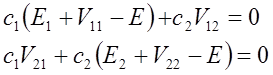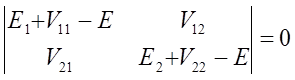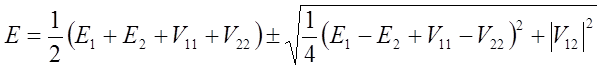 Ponieważ operator zaburzenia jest hermitowski to wielkości V11 i V22 są rzeczywiste, a V12= V21*. Rozwiązania te mają rozwiązania c1 i c2 gdy spełniony jest warunek: