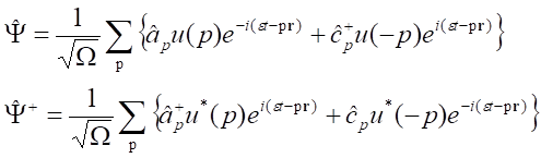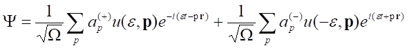 Fizyczny sens energii cząstki swobodnej może mieć jedynie dodatnia wartość ε, a jednocześnie nie można po prostu pominąć wartości ujemnych. W związku z tym ogólnym rozwiązaniem równania falowego jest tylko superpozycja wszystkich niezależnych rozwiązań szczegółowych. Zapiszmy współczynniki rozwinięcia ψ i ψ* w drugiej kwantyzacji w postaci: