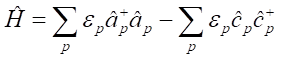 Druga suma odpowiada ujemnym wartościom własnym εp, i stąd znak minus przed sumą. Teraz operator ilości cząstek przyjmuje postać: