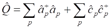 Aby wyznaczyć wartości własne obydwu operatorów należy doprowadzić kolejność czynników w drugich sumach to typowej kolejności ĉp+ĉp bo wartości własne takiego iloczynu operatorów równe są liczbom obsadzeni. Odpowiednio wartości własne ap+ap oraz ĉp+ĉp są liczbami całkowitymi i odpowiadają liczbom cząstek i antycząstek w odpowiednich stanach. Operator Q natomiast wskazuje, że w układzie obowiązuje prawo wymagające zachowania nie liczby cząstek i antycząstek, a tylko różnicy tych liczb. Inaczej mówiąc w różnych procesach mogą powstawać i zanikać pary: cząstka – antycząstka. Procesy akie muszą przebiegać zgodnie z zasadą zachowania energii i pędu oddziałujących cząstek, czyli w wyniku zderzenia cząstki z antycząstką pojawiają się inne cząstki tak aby energia i pęd były zachowane. Pojawiającymi się cząstkami, w procesie anihilacji są fotony. Jeżeli cząstka posiada ładunek elektryczny to antycząstka ma taki sam ładunek ale o przeciwnym znaku. Gdyby obydwie cząstki miały ten sam znak ładunku to ich zniknięcie lub pojawienie się byłoby sprzeczne z zasadą zachowania całkowitego ładunku.