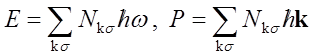 Wzory te pozwalają na wprowadzenie pojęcia kwantów świetlnych czyli fotonów. W takim ujęciu można rozpatrywać swobodne pole elektromagnetyczne jako zbiór cząstek, z których każda posiada energię ħω i pęd ħk = nħω/c.W takim ujęciu związek pomiędzy pędem i energią jest taki jaki przewiduje mechanika relatywistyczna dla cząstek o zerowej masie spoczynkowej, poruszających się z prędkością światła. W takim ujęciu liczby Nkσ oznaczają liczbę fotonów o danych pędach k i polaryzacji e(σ). Polaryzacja fotonu jest właściwością analogiczną do spinu cząstek. Aparat matematyczny jest taki sam jak zastosowany przez Diraca do opisu układów składających się z dużej ilości jednakowych cząstek, czyli tak zwanej drugiej kwantyzacji. Rolę zmiennych niezależnych odgrywają liczby obsadzenia (tutaj Nkσ) stanów, a operatory działają na funkcje tych liczb. Podstawową rolę odgrywają operatory anihilacji i kreacji cząstek, odpowiednio pomniejszające i zwiększające liczby obsadzeń o jeden. Operator ĉkσ anihiluje foton znajdujący się w stanie kσ, jako że posiad on elementy macierzowe tylko dla przejść Nkσ → Nkσ – 1. Natomiast operator ĉ+kσ kreuje foton w tym stanie, elementy macierzowe tego peratora nie znikają tylko dla przejść Nkσ → Nkσ + 1.