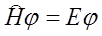 Funkcje falowe stanów stacjonarnych bez czynnika czasowego jak również wartości własne energii określone są równaniem: