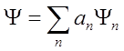 Zgodnie z zasadą superpozycji funkcja falowa Ψ powinna być kombinacją liniową funkcji falowych Ψn odpowiadających takim wartościom fn jakie mogą być zaobserwowane z prawdopodobieństwem różnym od zera przy pomiarze przeprowadzonym nad układem znajdującym się w danym stanie. Z tego wynika, że funkcję Ψ można przedstawić w postaci szeregu:![]()