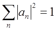 gdzie sumowanie przebiega po wszystkich n, a an oznacza stałe współczynniki. To wyrażenie pozwala na określić prawdopodobieństwo każdej z wartości wielkości f w układzie opisanym funkcją falową Ψ. Prawdopodobieństwo wartości fn powinno stawać się równe jedności jeżeli układ znajdzie się w stanie opisanym funkcją Ψn i stawać się równym zero jeżeli w rozwinięciu nie występuje składnik z daną funkcją własną Ψn. Jedyną wartością jaka spełnia te warunki jest kwadrat modułu współczynnika an. Inaczej mówiąc kwadrat |an|2 określa prawdopodobieństwo wartości fn wielkości f w stanie opisanym funkcją falową Ψ. Suma prawdopodobieństw powinna być równa jedności, czyli: