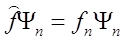 czyli w wyniku działania operatora na funkcja własna Ψn zostaje pomnożona przez odpowiadającej jej wartość własną fn. W ten sposób funkcja własna danej wielkości fizycznej jest rozwiązaniem równania: