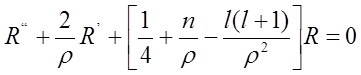 gdzie n jest dodatnią liczbą rzeczywistą dla ujemnych wartości E. Wtedy równanie przyjmuje postać (’ i “ oznaczają pierwszą i drugą pochodną względem zmiennej ρ):