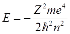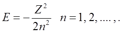 Wzór ten określa nieskończony zbiór poziomów energetycznych widma dyskretnego energii w polu kulombowskim pomiędzy stanem podstawowym E1= –1/2, a zerem. Poziomy energetyczne zagęszczają się wraz ze wzrostem n w miarę zbliżania się do E = 0, przy której widmo dyskretne przechodzi w widmo ciągłe. Przechodząc do zwykłych jednostek wzór na energię ma postać: