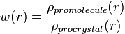 Powierzchnia Hirshfelda dla cząsteczki w krysztale jest konstruowana przez podzielenie przestrzeni kryształu na regiony, w których rozkład gęstości ładunków opisujących sumę udziałów sferycznych atomów dla cząsteczki (promolecule) przeważa nad sumą gęstości elektronowej kryształu ( procrystal). Zgodnie z modelem opracowanym przez Hirshfelda określamy wagi poszczególnych udziałów według wzorów: