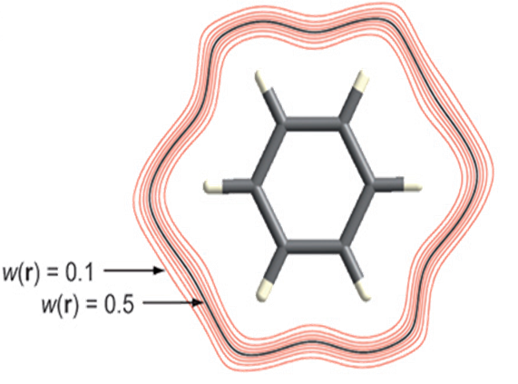 Według tego powierzchnia Hirshfelda jest to obszar w którym w(r) ≥ 0,5.