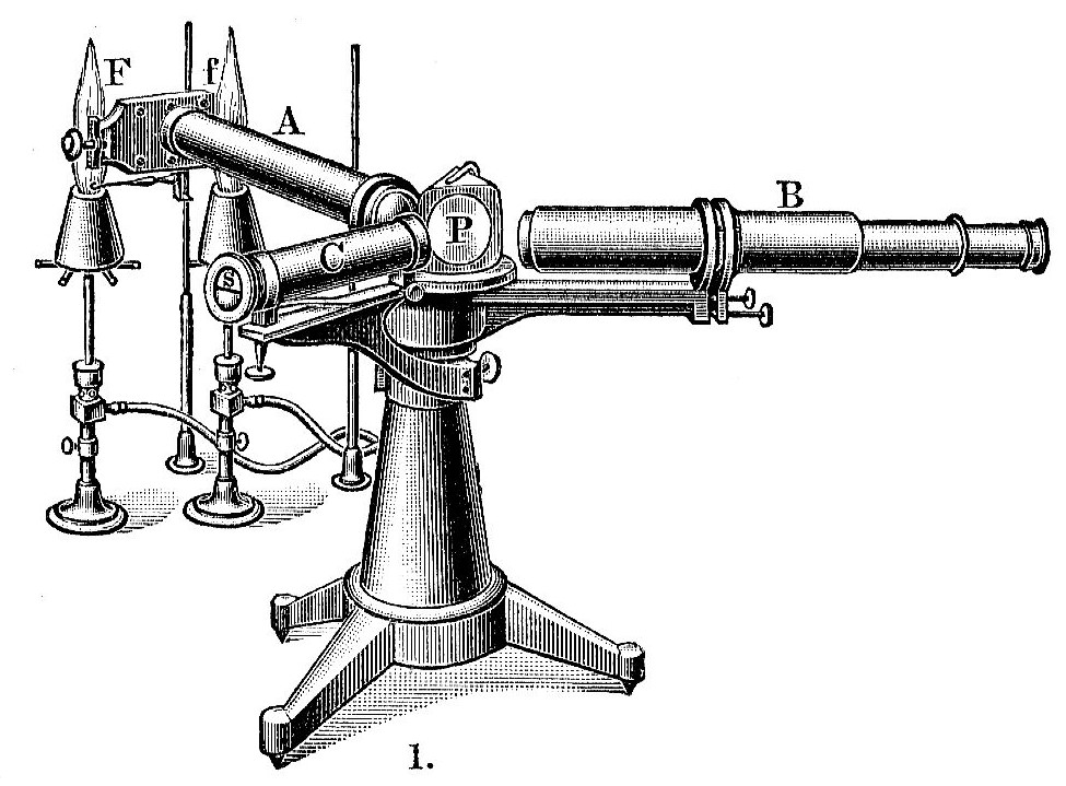 Swój pierwszy spektroskop uczeni skonstruowali z elementów dostępnych w laboratorium wykorzystując lunetki i pryzmat wykonane przez monachijskiego konstruktora Carla Augusta von Steinheila. Prawdopodobnie w skład pierwszego spektroskopu wchodziło też pudełko po cygarach Bunsena, który był ich wielkim miłośnikiem. Pudełko służyło jako osłona pryzmatu cieczowego, do której przymocowano pod stałym kątem lunetki kolimacyjną i obserwacyjną.