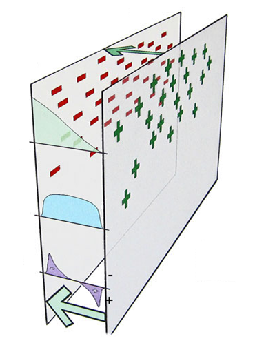 Zasadniczymi czynnikami determinującymi strukturę podwójnej warstwy elektrycznej są natura pozostających w kontakcie faz oraz stan ich polaryzacji. O tym jak rozłoży się ładunek elektryczny w warstwie decyduje w znacznej mierze przewodnictwo elektryczne graniczących ośrodków, a więc rodzaj, ruchliwość i stężenie obecnych w obu fazach, lub mogących w nich powstawać, ładunków elektryczności. Ponadto adsorpcja i orientacja cząsteczek polarnych oraz indukowanie się w nich ładunków wpływają na rozkład potencjału w obszarach międzyfazowych. Z tego względu struktura podwójnej warstwy elektrycznej jest silnie uzależniona od właściwości elektrochemicznych materiałów , z których zbudowane są fazy. W metalach nośnikami ładunki są elektrony, a ich stężenia i ruchliwość są znaczne. W półprzewodnikach w zależności od rodzaju nośnikami ładunku mogą być elektrony lub "dziury", względnie jony. Stężenia tych nośników są znacznie mniejsze niż w metalach, a ponadto znajdują się w pasmach energetycznych rozdzielonych strefą wzbronioną o różnej szerokości warunkującej łatwość przewodzenia prądu. W roztworach nośnikami ładunków są jony, różniące się stopniem solwatacji i ruchliwością. Globalne stężenie jonów zależy od typu, stężenia i stopnia dysocjacji obecnych w roztworze elektrolitów. Dalsze rozważania dotyczyć będą podwójnej warstwy elektrycznej na granicy faz elektroda metaliczna – roztwór elektrolitu. Jednak zachowanie takiego układu również jest uzależnione od szeregu czynników. Dla uproszczenia zajmiemy się podwójną warstwą elektryczną sprowadzoną do modelu dwu równoległych płaszczyzn obsadzonych nośnikami przeciwnych ładunków elektrycznych, przyjmując, że ładunki te są równomiernie rozmieszczone na płaszczyznach, z których jedna pokrywa się z powierzchnią metalu, a druga znajduje się w roztworze.