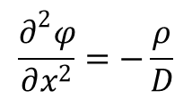 (1) równaniem Poissona wiążącym gęstość ładunku w określonym punkcie przestrzeni w odległości "x" od punktu centralnego z umieszczonym w nim ładunkiem, z wartościami potencjału elektrycznego: