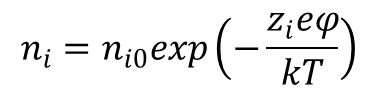 Jeżeli przez ni0 oznaczymy stężenie jonów danego rodzaju w tym obszarze ośrodka w głębi roztworu, w którym poziom potencjału umownie przyjmujemy za równy zeru, to w obszarze o dowolnym potencjale panujące tam stężenie będzie dane zależnością: