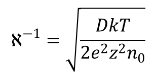 Pod względem oddziaływań elektrostatycznych model kondensatora płaskiego o odległości okładek χ–1 jest równoważny układowi z omówionym rozmytym rozkładem ładunku przeciwjonów. Wartość tak pojętej grubości warstwy rozmytej jest odwrotnie proporcjonalna do pierwiastka kwadratowego stężenia 1-wartościowego roztworu elektrolitu w głębi roztworu, a w wprost proporcjonalna do pierwiastka ze stałej dielektrycznej i temperatury bezwzględnej ośrodka: