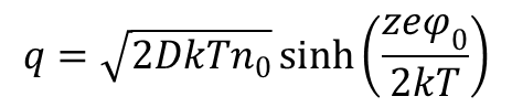 Teoria ta pozwoliła powiązać gęstość ładunku na powierzchni elektrody ze spadkiem potencjału φ0 w podwójnej warstwie elektrycznej oraz stężeniem n0 elektrolitu w roztworze: