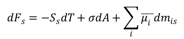Wychodzimy od definicji entalpii swobodnej powierzchni, nie mającej w modelu Gibbsa grubości, czyli o objętości zerowej: