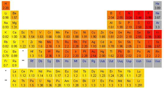 Z tego wynika, że elektroujemność ma związek z energią wiązania uwidocznioną przez różnicę pomiędzy wyrazami Haa i Hbb, które definiujemy jako energię wiązania orbitali atomów A i B. W ten sposób pomijamy efekty nakładania orbitali wyrażone przez Hab.–ESab.. Natomiast w równaniu zaproponowanym przez Paulinga nakładanie się orbitali (kowalencyjność wiązania) jest w pewien sposób uwzględniania przez wprowadzenie średniej (geometrycznej) energii wiązań homojądrowych cząsteczek A–A i B–B.
