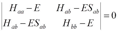 Z matematycznego punktu widzenia zgodnie z teorią orbitali cząsteczkowych wyznacznik sekularny dla dwuatomowej cząsteczki heterojądrowej ma postać: