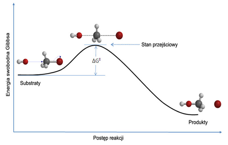 - Szybkość reakcji wzrasta w obecności katalizatora ponieważ katalizator zwiększa liczbę zderzeń efektywnych. Dzieje się tak na przykład gdy jeden lub więcej reagentów reaguje z katalizatorem tworząc cząsteczki, które wymagają mniejszej energii aktywacji.