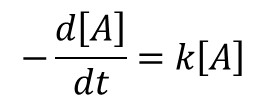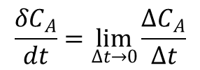 gdzie ΔCA jest różnicą pomiędzy CA w momencie t+Δt i CA w momencie t. Wyraz dC/dt można odczytać jako przyrost C podzielony przez przyrost t, czyli jest on nachyleniem krzywej C w zależności od czasu t. Dla reakcji A → B, której szybkość zależy od stężenia A w pierwszej potędze równanie kinetyczne można zapisać w formie: