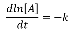Z czego wynika, że dla reakcji pierwszego rzędu wykres zależności ln[A] od czasu jest linią prostą o stałym nachyleniu równym –k. Inaczej mówiąc stosunek zmiany stężenia do czasu jest stały i niezależny od czasu. Oznacza to również, ze czas potrzebny do przereagowania połowy reagenta (jaka jeszcze pozostała) jest stały. Oczywiście w miarę upływu czasu stężenie reagenta maleje ale czas potrzebny do zmniejszenia jego ilości do połowy pozostaje stały przez co reakcja przebiega coraz wolniej. Czas półtrwania dla reakcji pierwszego rzędu określa zależność: