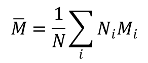 gdzie Ni jest liczbą cząstek o masie molowej Mi, a N oznacza liczbę wszystkich cząstek w próbce. W zależności od metody jaką wyznacza się średnią masę molową otrzymujemy lepkościową średnią masę molową gdy mierzy się lepkość roztworu. Pomiary rozpraszania światła pozwalają na wyznaczenie masowo średniej masy molowej, a pomiary czasu sedymentacji tzw. z-średnią masę molową. Różne wartości tak wyznaczonych średnich mas molowych pozwalają na wyznaczenie współczynnika heterogeniczności próbki (współczynnika polidyspersji). Współczynnik ten wyznacza się jako iloraz średnich mas molowych wyznaczonych na podstawie pomiarów lepkościowych i sedymentacyjnych. Jeżeli współczynnik heterogeniczności próbki jest mniejszy niż 1,1 (polimery syntetyczne)to o takim polimerze mówi się, że jest monodyspersyjny.